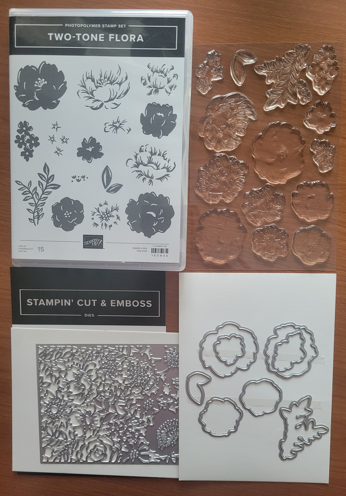 This gently used retired Two-Tone Floral bundle comes with 15 photopolymer stamps, all 15 are for creating beautiful flowers plus 9 coordinating dies.